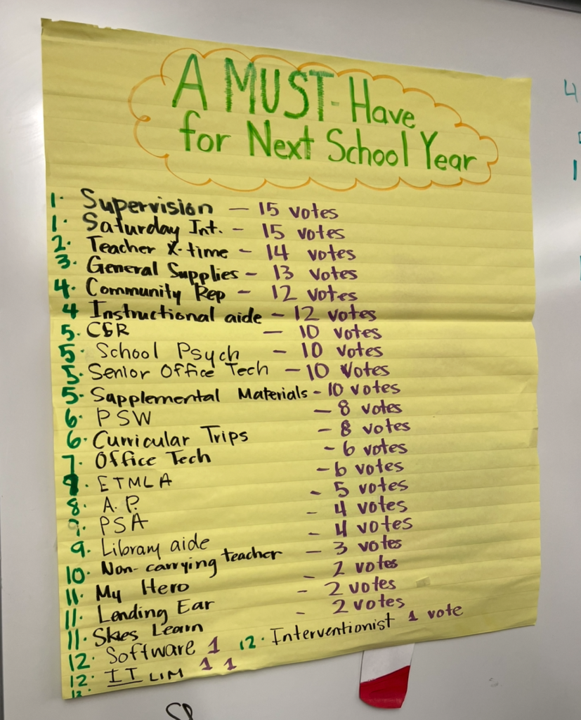 02.27.26 Read Time: 1 min Ascot Avenue Wins Budget Fight Through the LSLC At Ascot Avenue Community School, educators and families are showing what Community School power looks like. In the fall, Ascot’s Local School Leadership Council (LSLC) and the School Site Council worked together on a budget for the 2026-2027 school year that would reallocate funds from an assistant principal position to more urgent classroom supports. “We took the job of developing the budget seriously and spent hours wrestling with our priorities,” Chapter Chair Maria Yanez said. Ascot Avenue educators map out school budget priorities for next year. Soon after submitting the budget, Yanez was called to meet with the local district director and questioned. It became clear that the local district’s bottom line was for the AP position to be funded. Yanez took the budget back to the councils and they met multiple times, making some small tweaks but ultimately committing to the vision they developed. One option that helped save the day: National Board-Certified teachers at Ascot stepped up to take over PDs that an AP might have handled. Last month, the district director finally approved the LSLC’s budget. Ascot’s victory is a clear demonstration of LSLC’s power in addressing school-site needs while strengthening their budget autonomy — a right won from the 2019 strike. “In the end, we told the district that we listened to their suggestions but after thorough discussion, this is the budget that we want,” Yanez said. “Our team stayed committed—we know what we’re doing, and we know what our students need.” Recent News See All Posts Carvalho Tries to Distract From Billions Committed to Outside Contractors 20.02.26 PART 1: What is up with LAUSD and the Royal Bank of Canada? Maria Lopez 20.02.26 Schools Hold Board Member Franklin’s Feet to the Fire 13.02.26 Select Language English Español