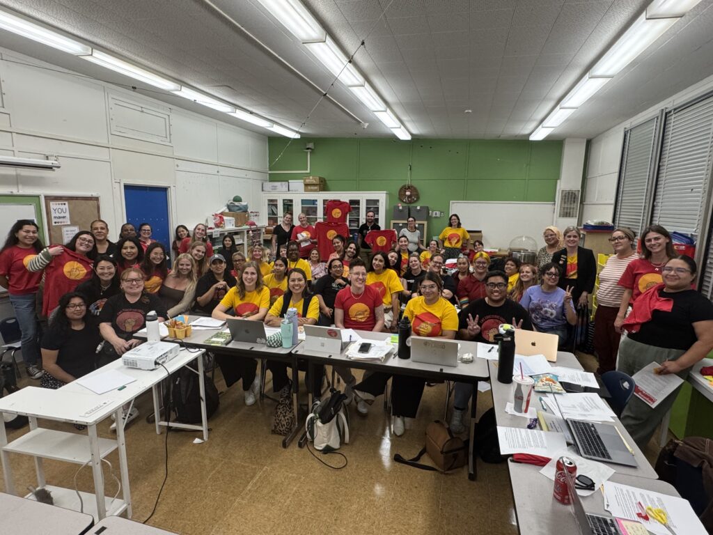 10.06.25 Read Time: 1 min CWC Educators Pack the Room to Win on Demands for Prep Time, IEP Deadlines, & More Frustrated with management’s top-down decision making and unfulfilled promises, educators at Citizens of the World Charter (CWC) schools in LA organized a campaign with UTLA to unionize over 160 educators, and in June 2024 successfully unionized with a 90% YES vote. Then last December, the newly unionized CWC educators voted unanimously to endorse a bargaining platform to address class size, staffing, student safety and stability, educator support, and more. Bargaining started in February for CWC Educators United’s first contract, and last month, they held their first open bargaining session with 60 members packing the room. CWC educators Alissa Merz and Martin Mumm said having so many members present shifted the dynamic in the bargaining room. “The energy in the room was electric with so many passionate teachers united in the fight for a fair contract,” said Merz. “You could see the impact on the opposing lawyer,” Mumm said. “His tone totally changed, and he agreed to meet more frequently in order to ‘lower the temperature.’” With the show of CWC educator force in the bargaining room, they won an MOU agreement with protections around prep time, IEP deadlines, and more. Contract bargaining continues and CWC educators are united and ready to turn up the pressure to win their demands. Recent News See All Posts Logan Community Calls Out Scofflaw Charter for $900,000 Debt 03.10.25 LAUSD Is Outlier in Stashing Away Billions in Reserves 30.09.25 UTLA ‘Yes On Prop 50’ Canvass on October 11 23.09.25 Select Language English Español