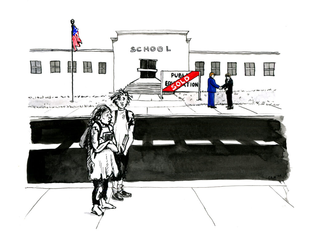 Read Time: 6 min Who benefits from Trump’s dismantling of the Department of Education? By UTLA Research Department Oct 30, 2025 This is the first in a two-part series from researchers at the Los Angeles Alliance for a New Economy In March, President Trump issued an executive order directing his Secretary of Education Linda McMahon to “take all necessary steps” to dismantle the Department of Education.1 While fully eliminating the Department would require legislation by Congress,2 the Trump administration is on track to achieve the same goal in all but name – slashing nearly half the Department’s workforce,3 gutting civil rights enforcement in schools,4 defunding public schools,5 and boosting private and charter schools.6 These actions stand to benefit certain factions – like charter school backers – and many of these groups’ representatives have been instrumental in helping Trump return to the presidency and now hold positions in his administration. This two-part blog highlights four of these factions and some of their members: this first piece outlines the factions themselves, while part two will trace their ties to Los Angeles. Although these groups’ interests vary – some are financial, while others are ideological – they have found common cause behind Trump’s efforts to dismantle public education. Charter school backers Advocates for expanding charter and private schools at the expense of public schools are among the biggest beneficiaries of Trump’s plans. The Department has already issued guidance encouraging states to use federal dollars to expand charter and private schools,7 and, as called for by Project 2025, appears likely to repeal Biden administration regulations that constrained the opening of new charter schools.8 The rewards are financial as well – the Department has funneled a historic $500 million into charter programs this year, including more than $4.5 million for California-based charter advocacy groups.9 Advocates for this agenda are not just toasting the President – they are profiting as they help execute it. Secretary Linda McMahon is a prime example. A longtime charter backer, McMahon and her husband have donated approximately $2 million to Achievement First, a charter school network operating in the northeast.10 In addition to now leading the Department of Education, McMahon played a major role in Trump’s return to power: she was the 6th largest individual donor to pro-Trump Super PACs during the 2024 campaign (giving over $20 million)11 and co-chaired his official transition team.12 Many DOE appointees come from America First Policy Institute (AFPI), a think tank that McMahon led during the Biden administration.13 The McMahons are by no means the only billionaire privatizers behind Trump’s agenda. Many others gave heavily to secure the Republican Senate majority now enabling Trump’s assault on public education. Alice and Jim Walton, heirs to the Walmart fortune, sent a combined $17.5 million to Super PACs backing congressional Republicans for the 2024 election.14 The Walton Family Foundation has provided hundreds of millions of dollars to support pro-charter candidates and charter school networks in the last few decades.15 The new Republican majority has stood by as Trump’s DOE illegally withheld federal education dollars and sabotaged the Department from within.16 Education profiteers For-profit education companies also stand to gain from Trump’s education policies. The administration’s promised rollback of oversight and regulation paves the way for these firms to pad their profit margins at the expense of students and the public. Since 2010, the Department of Education has been enormously effective in cracking down on the abuses of the for-profit college sector. Now, with the Supreme Court approving Trump’s firing of over 1,300 Department staff, the Trump administration has begun to dismantle this successful regulatory framework and the sector’s predatory practices will return in full force.17 Executives and lobbyists from the very companies that stand to benefit funded Trump’s campaign and are now staffing his administration. Administration appointees that come directly from for-profit education firms include Penny Schwinn – nominated to the number two-ranked position in the Department18 – who previously worked at The Vistria Group, a private equity firm that owns and invests in education companies.19 The Trump administration’s actions are also improving the outlook for companies seeking to profit from K-12 education, and particularly those focused on Artificial Intelligence (AI). In April, Trump issued an executive order “promoting the appropriate integration of AI into education” through, for one, “public-private partnerships.”20 Trump’s “AI czar” is David Sacks,21 Elon Musk’s buddy22 and a venture capitalist whose firm has invested in AI and educational technology companies like CourseHero.23 A greater “integration” of AI into schools would present new or expanded markets for educational technology companies like these. Culture warriors A third group benefitting from Trump’s dismantling of the Department are culture warriors who see public schools as vehicles for liberal indoctrination. They have cheered the transformation of the Department’s Office of Civil Rights (OCR) from a body that investigates civil rights violations in schools into one that weaponizes the federal government to attack equity efforts and protections for marginalized students.24 Operatives who previously worked towards these goals outside the federal government are now staffing the Department itself. One such figure is Kimberly Richey, nominated to lead OCR.25 Richey previously consulted for Parents Defending Education,26 the right-wing education group that has spent millions targeting DEI programs27 and filing civil rights complaints against school districts over alleged ‘racial preference’ policies.28 R